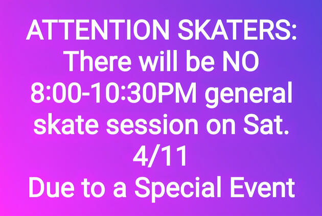 $5 Skate Rental / $7 Rollerblade Rental8:00 PM – 10:30 PM (There will be NO 8-10:30PM Session on 4/11/26)