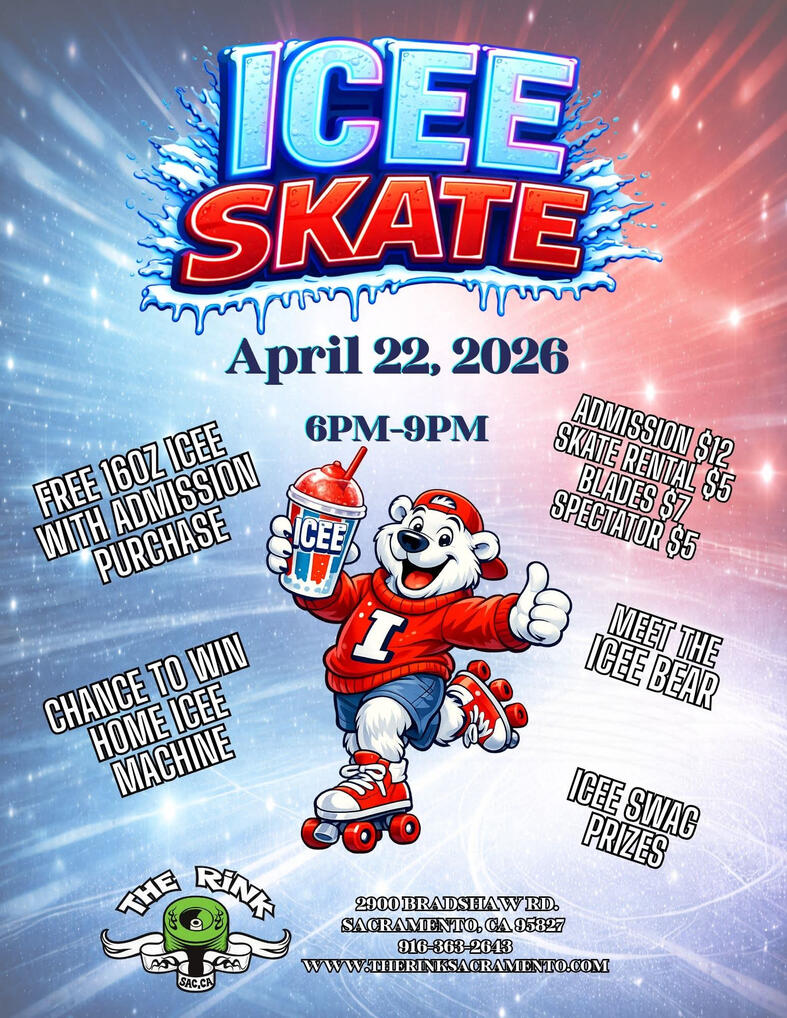 - $3.00 per person to be refunded back to the group & $150 deposit, If the minimum of 75 paid skaters is reached.FOR MORE INFORMATION CALL US AT (916)363-2643